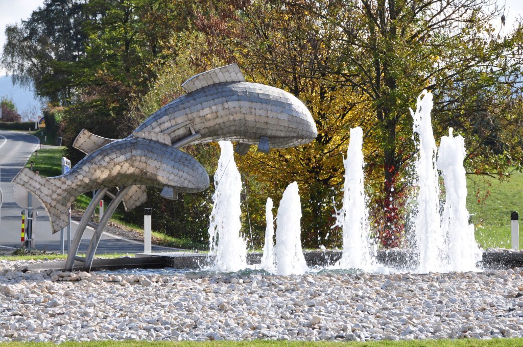 Fische-Brunnen im Kreisverkehr - Pörtschach am Wörther See, Kärnten (9210-KTN)