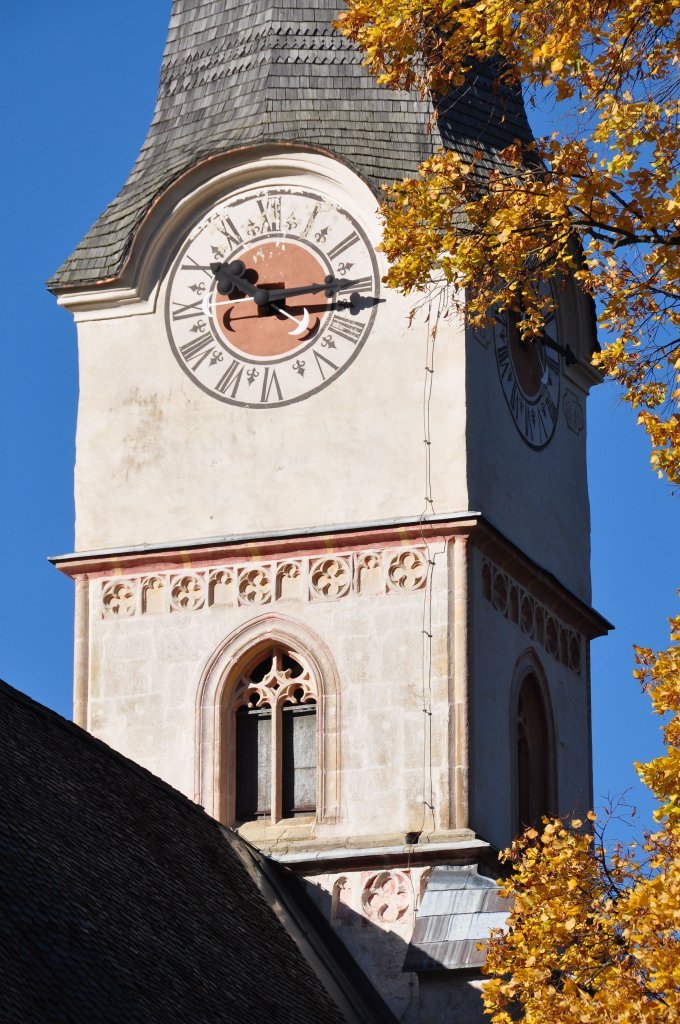 Kirchturm-Ausschnitt der Pfarr- und Wallfahrtskirche Unsere Liebe Frau