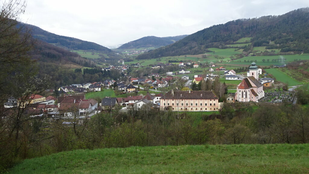 Fernblick zum Prandhof und zur Pfarrkirche Niederranna