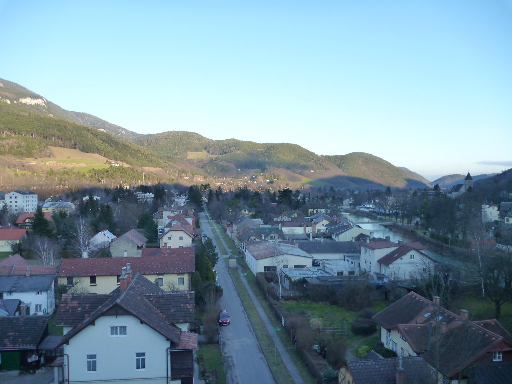 Payerbach vom ÖBB Viadukt gesehen (mit Wr. Hochquellenwasserleitung)