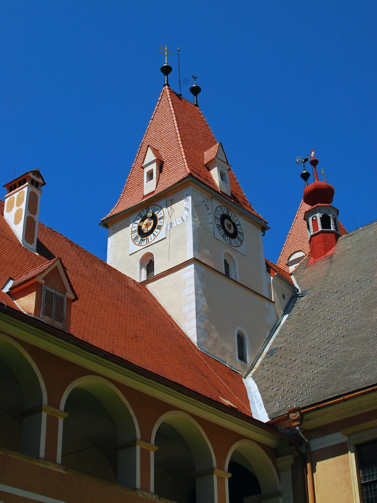 Blick zur Turmuhr im Stift Vorau - Vorau, Steiermark (8250-STM)